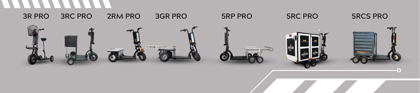 - Modellvielfalt & Anpassung: Detaillierte Auflistung der Modelle (3R PRO, 5R PRO, 2RM PRO) und der personalisierbaren Ladeflächen (Box, Rollwagen).