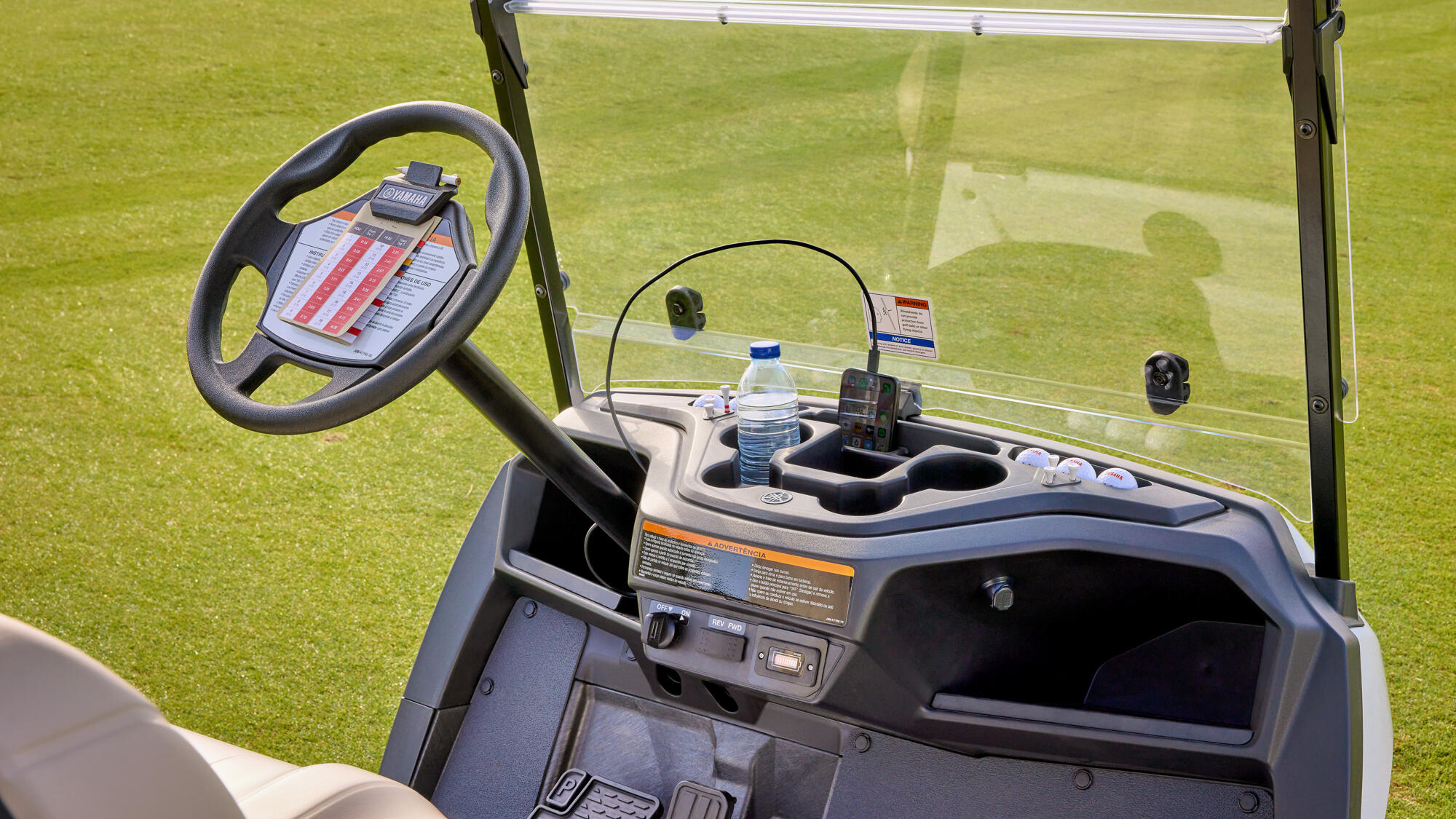 Der Drive² AC wurde mit Blick auf den modernen Golfspieler entwickelt und verfügt über ein Armaturenbrett im Automobilstil mit bequem zu erreichendem Stauraum für Getränke und persönliche Artikel. Das Staufach mit Anti-Rutsch- Matte dient als ideale Ablage für Ihr Handy, und mit den optionalen USB-Anschlüssen können Sie als Golfspieler sicher sein, dass Ihre Geräte den ganzen Tag geladen sind.